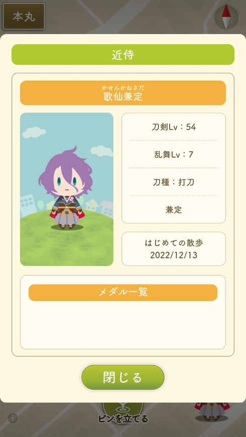 歩数は関係ないし、野生の刀剣男士をゲットできるわけではないけど、ちょっとでもポイントが欲しかったら家から出ないとなりません。